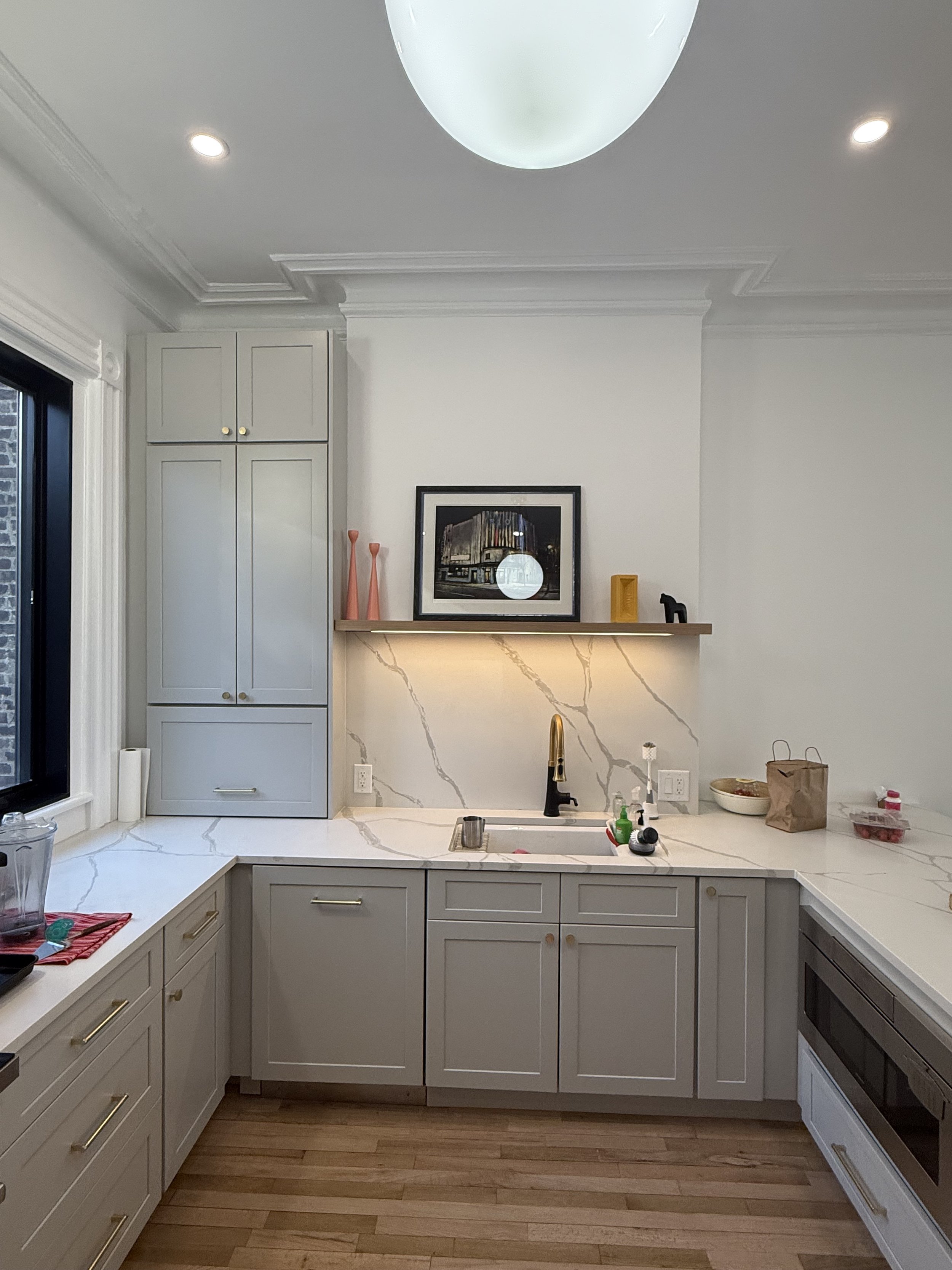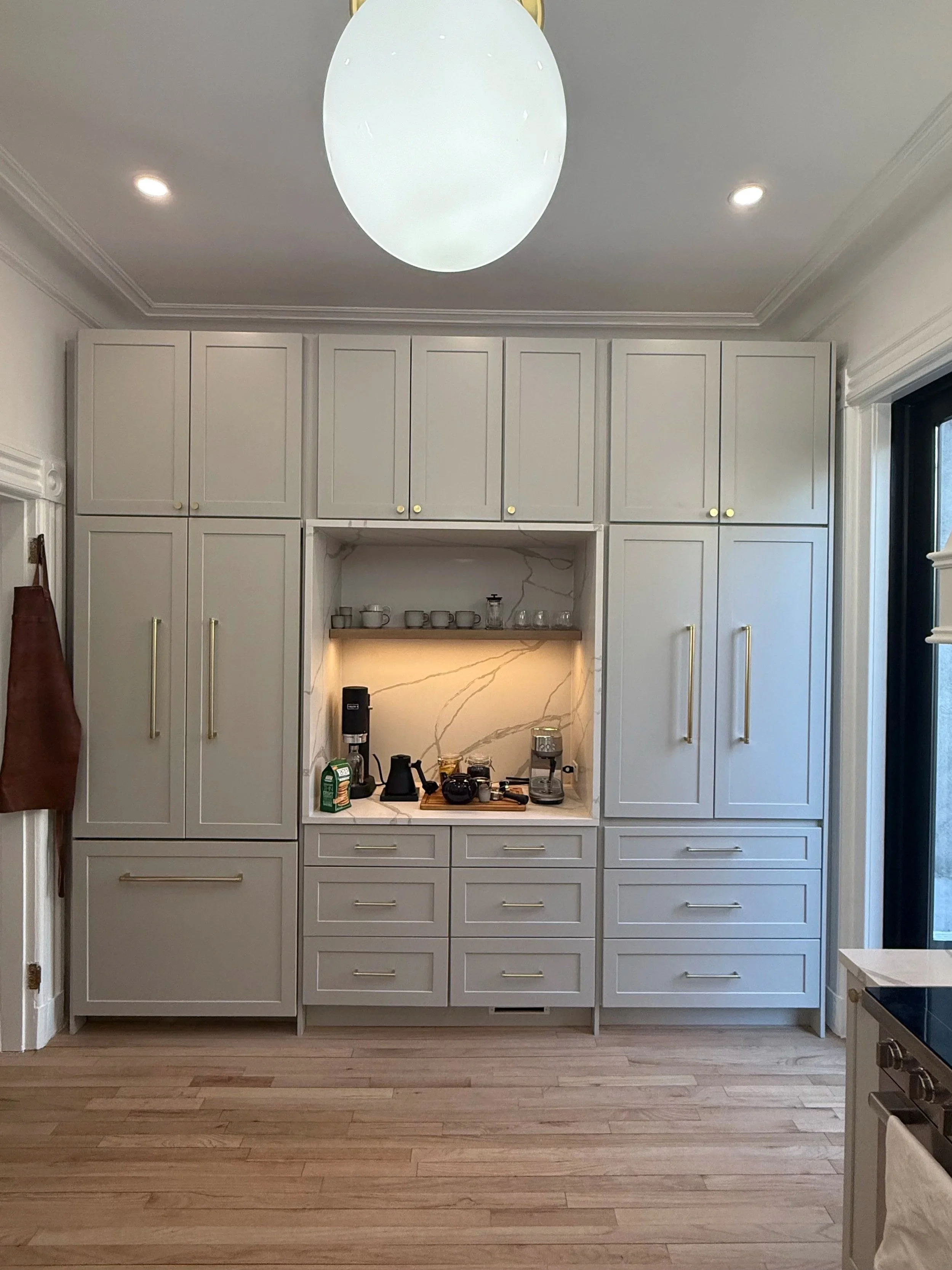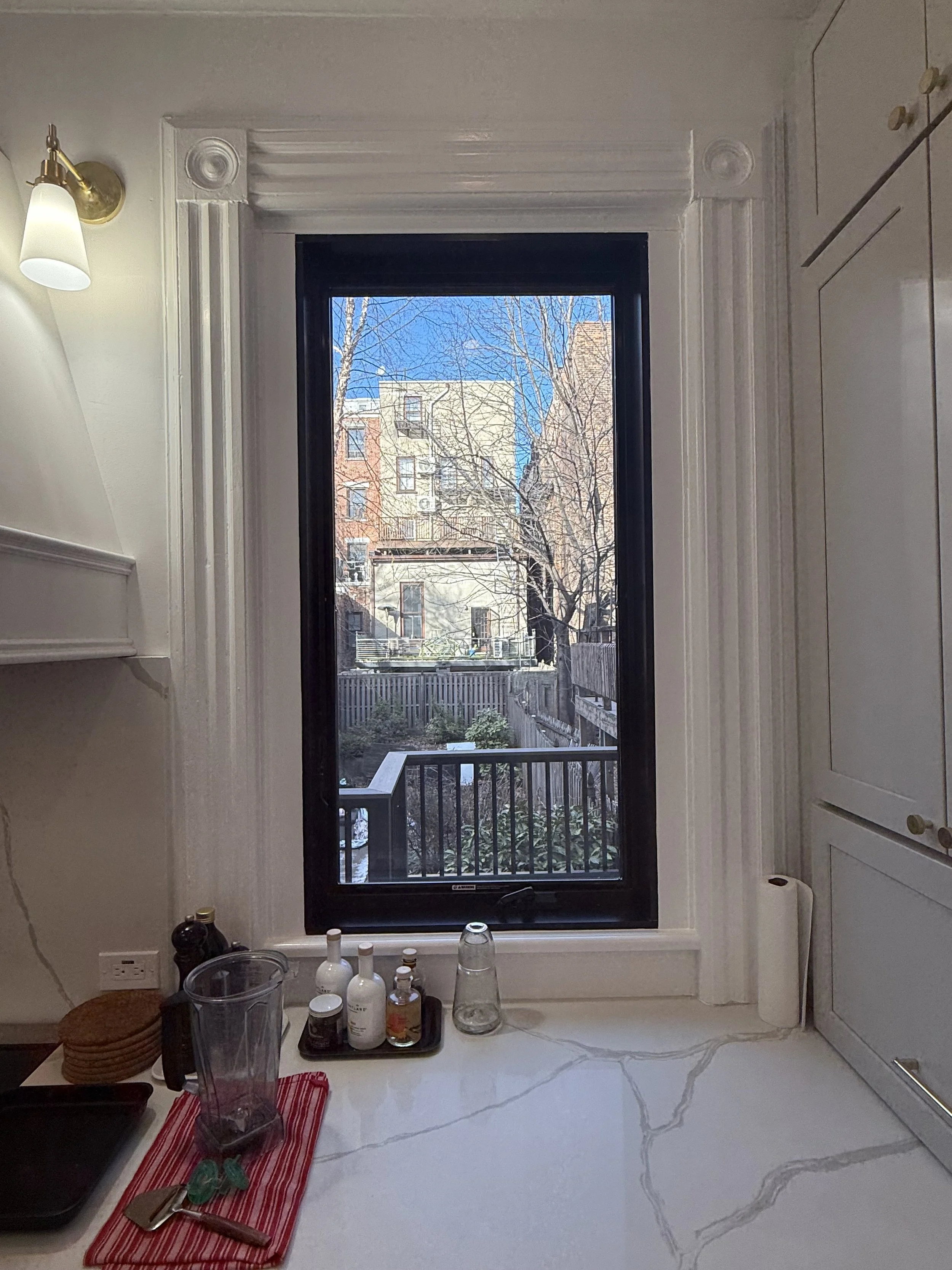 Interior renovation of a historic Jersey City townhouse, focusing on the kitchen.